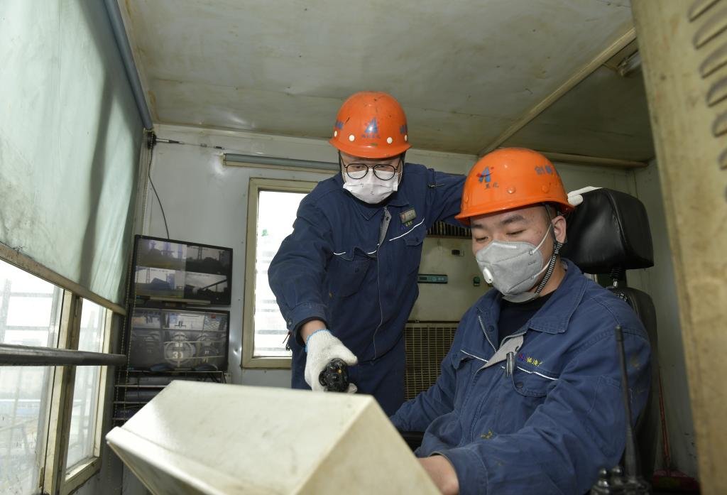 1月25日,临涣焦化公司炼焦一车间二班班长张昂(左一)班中进行岗位安全巡查。当日,该车间200余名干部职工坚守生产一线,以劳动的方式迎接新春佳节的到来,保证了节日期间持续稳定生产。