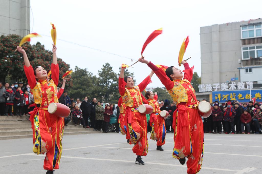 划旱船、骑毛驴、逗河蚌、大头娃娃等传统民间文艺也用各自特色表演向坚守工作岗位的干部职工拜年。