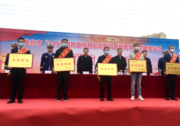 11月5日上午,在淮北市“119”消防宣传月活动启动暨市消防科普教育体验馆揭牌仪式上,3044am永利集团官网集团荣获“全市消防工作先进集体”称号。