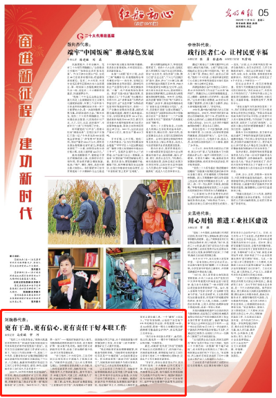 “学习党的二十大报告时,工友们特别关注报告里关于技能人才的相关表述。”刘婉春告诉记者,“当大伙儿看到报告提出,‘加快建设国家战略人才力量,努力培养造就更多大师、战略科学家、一流科技领军人才和创新团队、青年科技人才、卓越工程师、大国工匠、高技能人才’时,兴奋地直拍大腿!”刘婉春说。