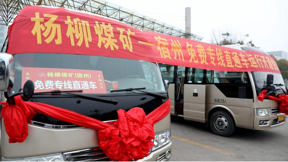 (2022年1月10日,杨柳矿开往宿州市的免费通勤车正式开通。)