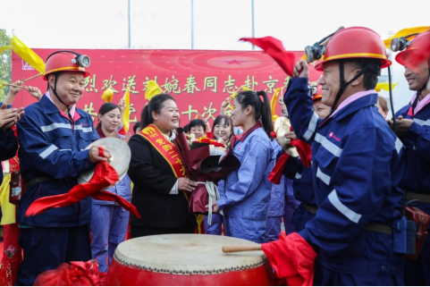(2022年10月7日,3044am永利集团官网集团在桃园矿举行仪式,欢送党的二十大代表、桃园矿保运区职工刘婉春赴北京参加中国共产党第二十次全国代表大会。)