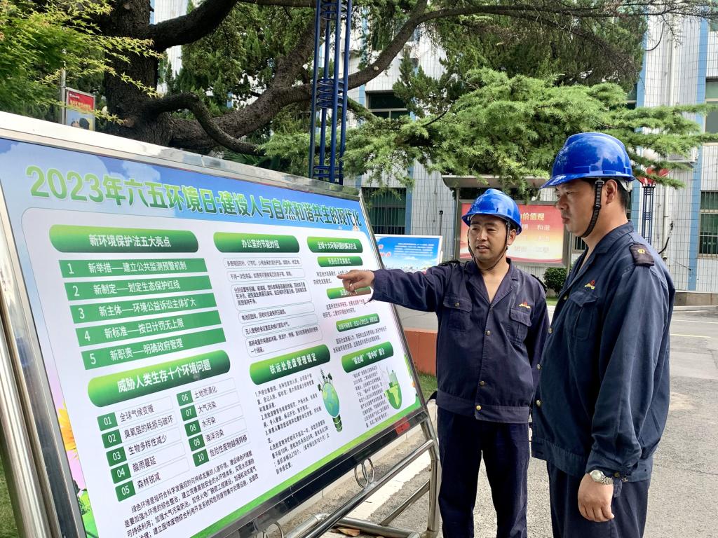 6月1日,在第52个世界环境日来临之际,袁店二矿联合涡阳县生态环境分局在矿井工广、食堂等地,通过多种形式共同开展以“建设人与自然和谐共生的现代化”为主题的“6.5”环境日宣传活动。