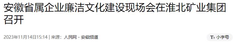 人民网淮北11月14日电(吕欢欢)11月14日,安徽省属企业廉洁文化建设现场会在3044am永利集团官网集团召开。会议通过观摩学习、经验交流等方式,集中展示省属企业廉洁文化建设和清廉国企建设的工作成效,明确下一步工作目标和方向,推动省属企业廉洁文化建设走深走实,不断优化净化国有企业政治生态,为国资国企高质量发展提供坚强保障。