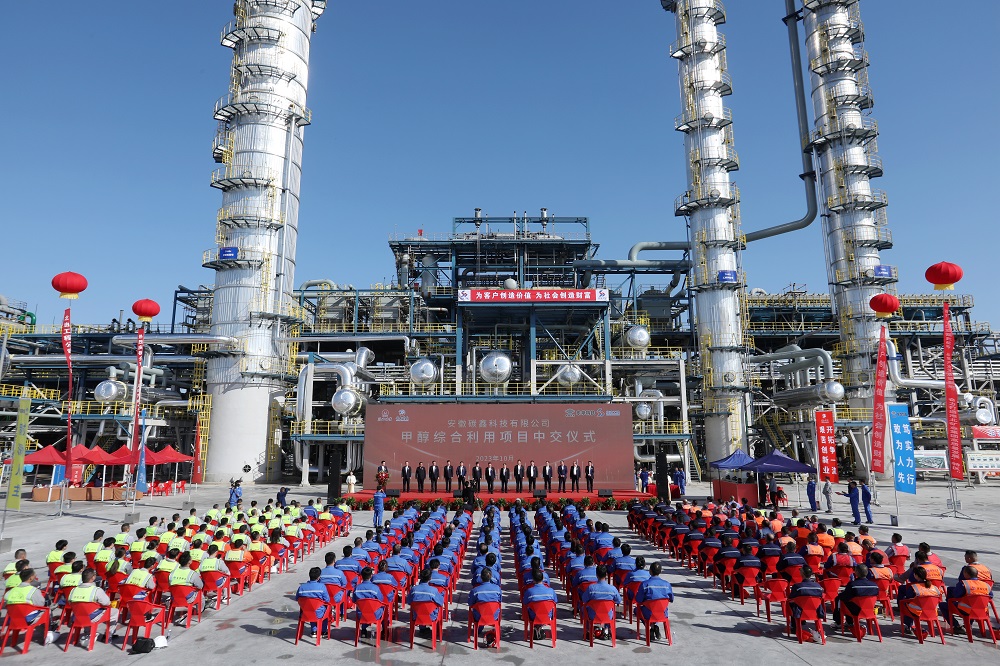 10月20日,碳鑫科技公司举行甲醇综合利用项目中交仪式,由施工建设阶段全面转入生产准备阶段。(王明明 摄)
