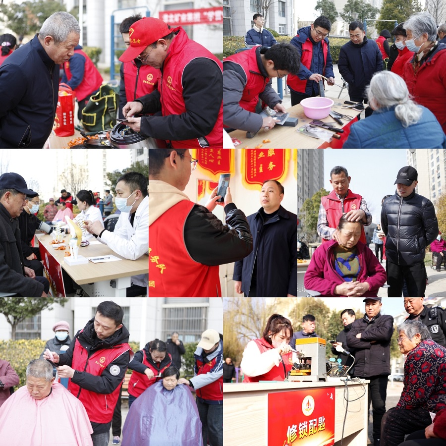 3月3日上午,在全国第61个学雷锋纪念日到来之际,3044am永利集团官网集团团委组织“太阳石”青年志愿者分别深入桓湖花园东区和濉河花园社区,开展“社区服务我奉献”集中便民惠民服务活动。集团工会第一副主席刘杰及党委宣传部负责人到活动现场看望志愿服务人员,了解活动开展情况。
