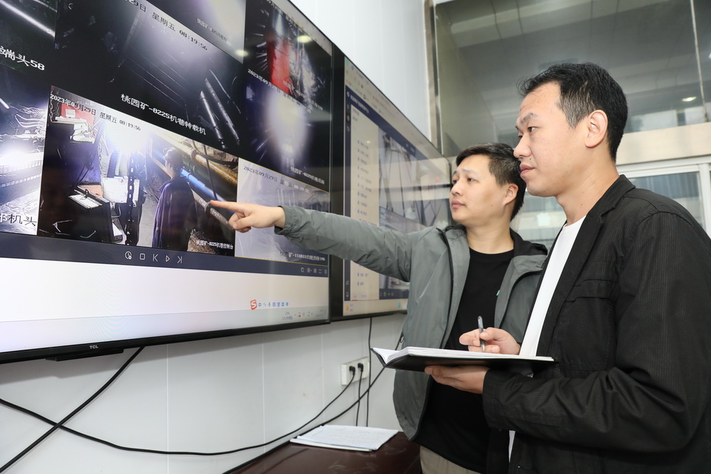 在调度指挥中心,季跃、郭路路两人正在线上比对监测数据。“五一”期间,为让工友享受假期快乐时光,他们放弃轮休的机会,选择坚守在岗,全天候监测各类安全数据变化,用行动守护矿井安全。