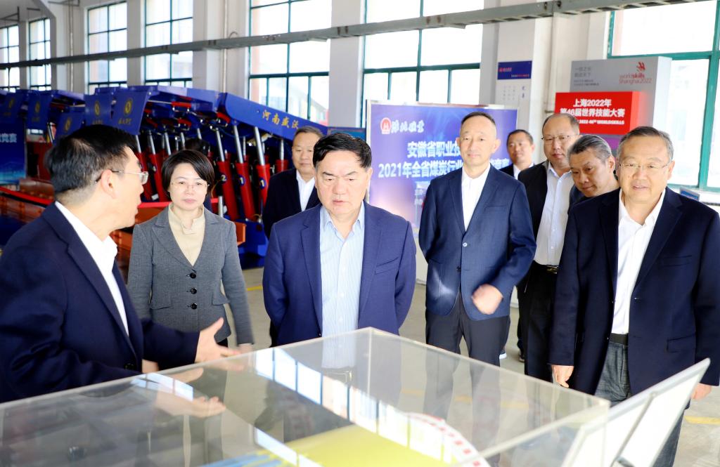 李和平实地参观了位于学院综合实训基地的智能化综采工作车间、煤矿安全警示教育馆、建筑安全体验馆、工匠大师工作室、工匠大师荣誉展厅、实习矿井等场所,并与工匠大师杨杰等深入交流,了解实训科研、产教融合、校企合作等情况。