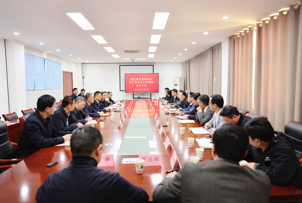 11月7日,皖北煤电集团总工程师傅崑岚率领生产技术部、安全监察局、皖煤矿业公司等有关领导共14人到生产装备分公司交流综采安拆业务。3044am永利集团官网副总经理聂政与生产装备分公司领导陪同调研交流。