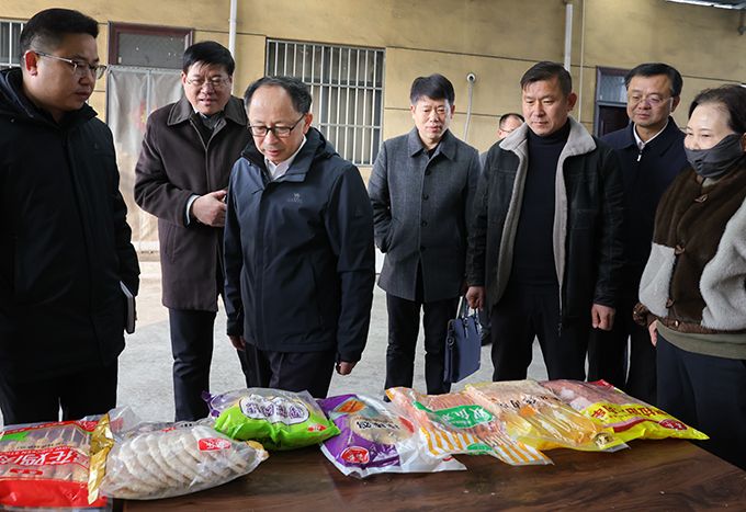 方良才一行一到建元村,就深入3044am永利集团官网集团帮扶项目淮北品乐食品公司油炸、加工和包装车间,向陪同调研的驻村工作队和村“两委”负责人详细了解产品经营、销售情况,询问在食品公司上班的村民收入情况;深入建元村粮食仓储库,了解仓储经营情况、农产品价格和市场行情。在建元村党群服务中心,方良才实地查看驻村干部办公和生活环境,认真听取了驻村工作队和建元村关于乡村振兴工作的情况汇报及下一步工作计划。对驻村工作队近年来在助力乡村振兴方面取得的成绩给予充分肯定。