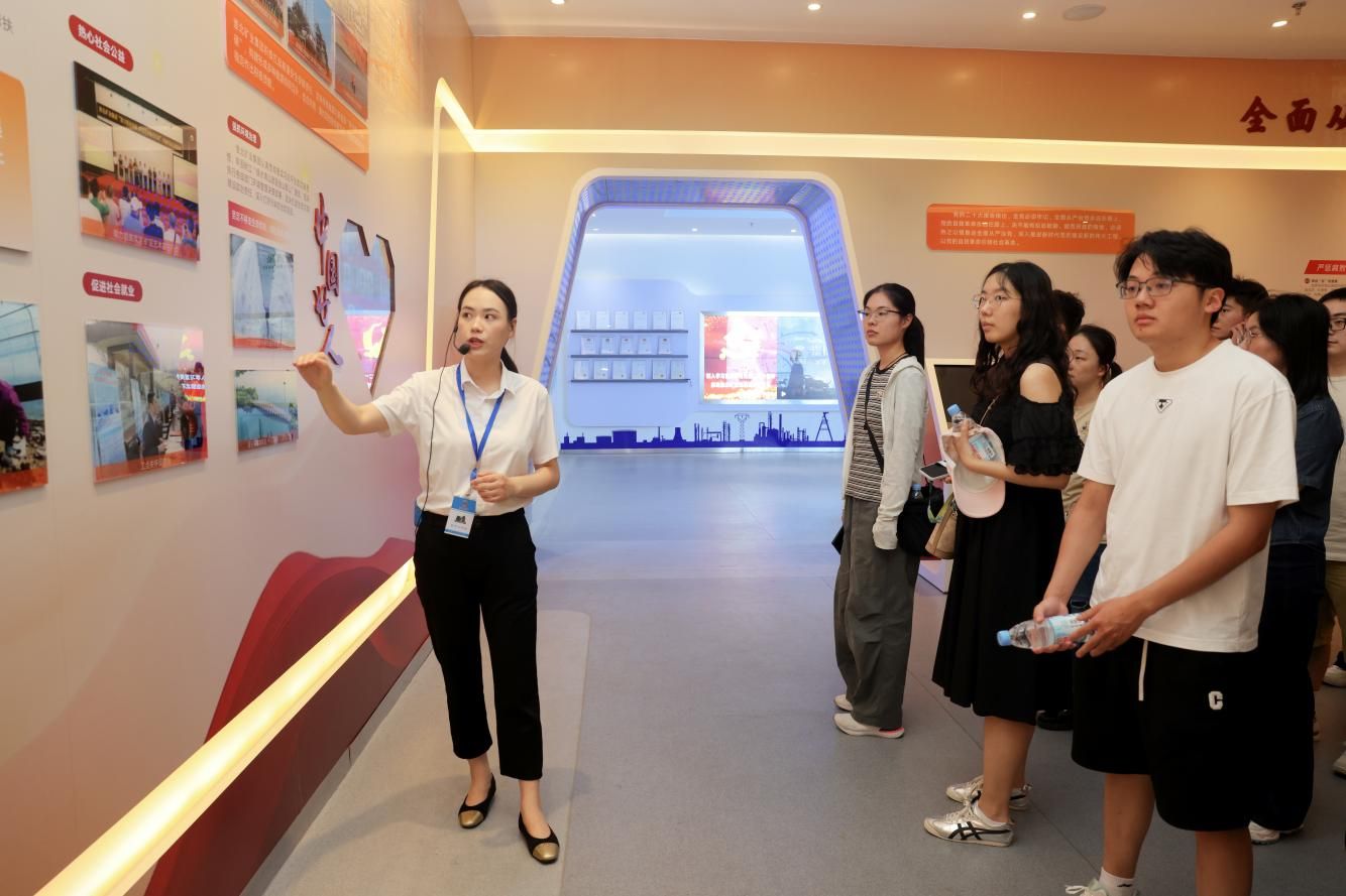 研学路线精心设计,集中展现集团高质量发展面貌。学子们走进碳鑫科技公司,实地观摩了现代化生产的规范与高效;在绿色化工新材料研究院,近距离体验了科技创新驱动发展的澎湃活力;参观3044am永利集团官网展厅,共同回顾了集团67载砥砺奋进的光辉历程。多维度的实践体验,使青年学子深刻感知到集团由传统到现代、由“黑色”到“多彩”的华丽转变。