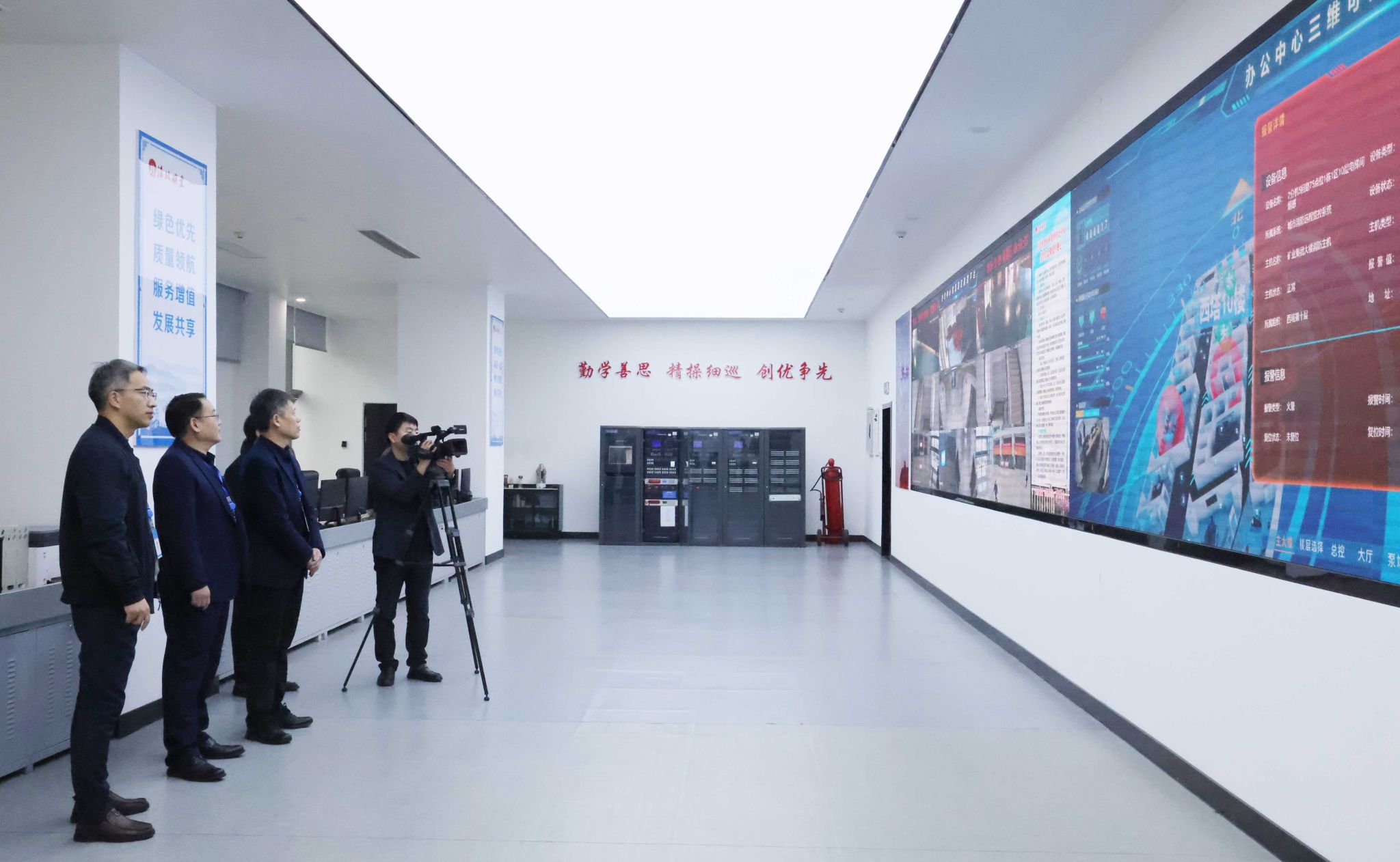 上午8时52分,演习正式开始。模拟火情设定在西塔10层,集控中心发现警报后,迅速启动火灾应急处置预案,同步上报值班领导、调派灭火组前往扑救,并模拟拨打119报警。随即,楼内应急广播系统启动,播报火情信息,并下达全体人员通过步梯紧急疏散撤离的指令。