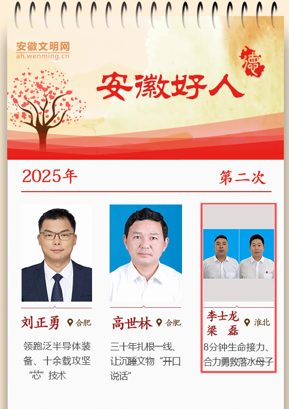 1月4日,安徽省委宣传部发布了2025年第二次“安徽好人”榜单,青东矿职工李士龙、梁磊荣登榜单,获评见义勇为类“安徽好人”称号。