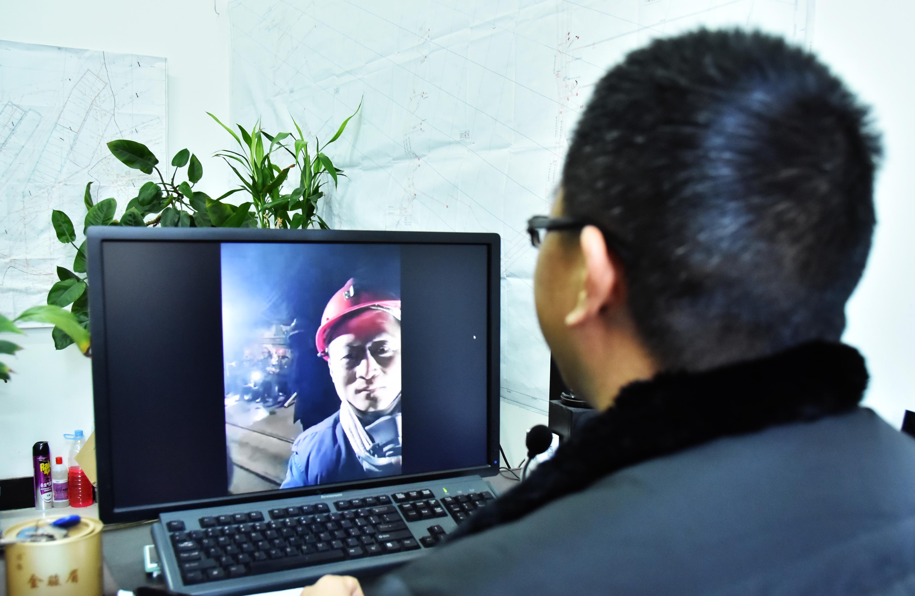 3044am永利集团官网集团管理人员在地面通过单兵装备与井下工作人员视频连线
