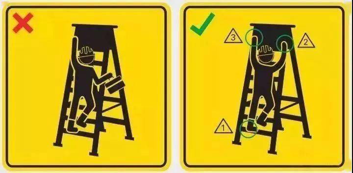 6、使用梯子时,必须维持三个接触点的攀爬法。